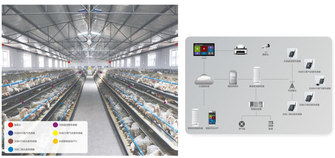 基于物聯網的畜禽智能養殖監控系統利用物聯網技術,圍繞設施化畜禽養殖場生產和管理環節,通過智能傳感器在線采集養殖場環境信息(二氧化碳、氨氣、硫化氫、空氣溫濕度等),同時集成改造現有的養殖場環境控制設備,實現畜禽養殖的智能生產與科學管理。養殖戶可以通過手機、PDA、計算機等信息終端,實時掌握養殖廠環境信息,及時獲取異常報警信息,并可以根據監測結果,遠程控制相應設備,實現健康養殖、節能降耗的目的。